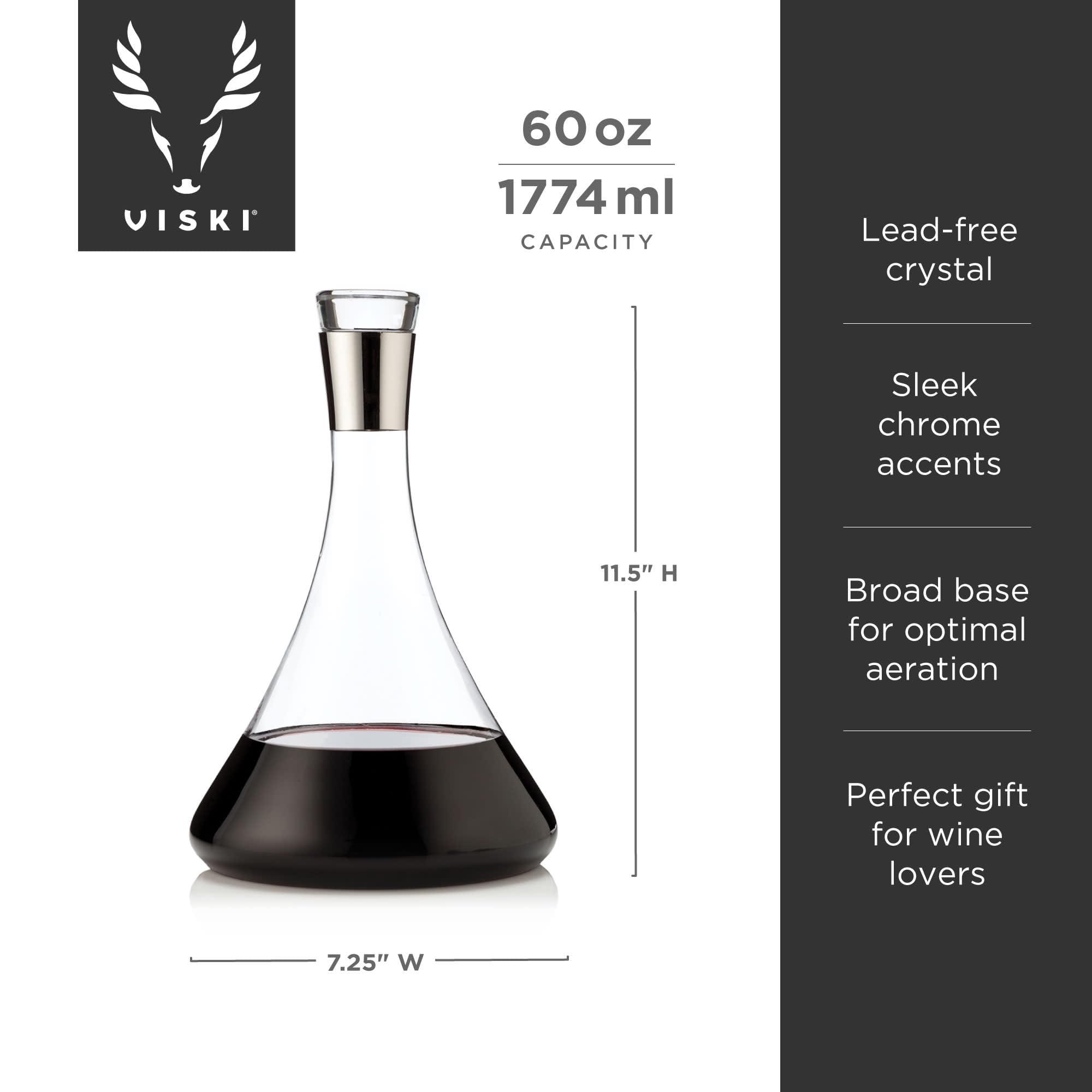 MODERN FORM WITH CHROME DETAIL – Crafted from lead-free crystal, this wine decanter features angular lines and a glass stopper with chrome rim. A sculptural addition to barware and glassware that complements any kitchen bar or dining table setup.