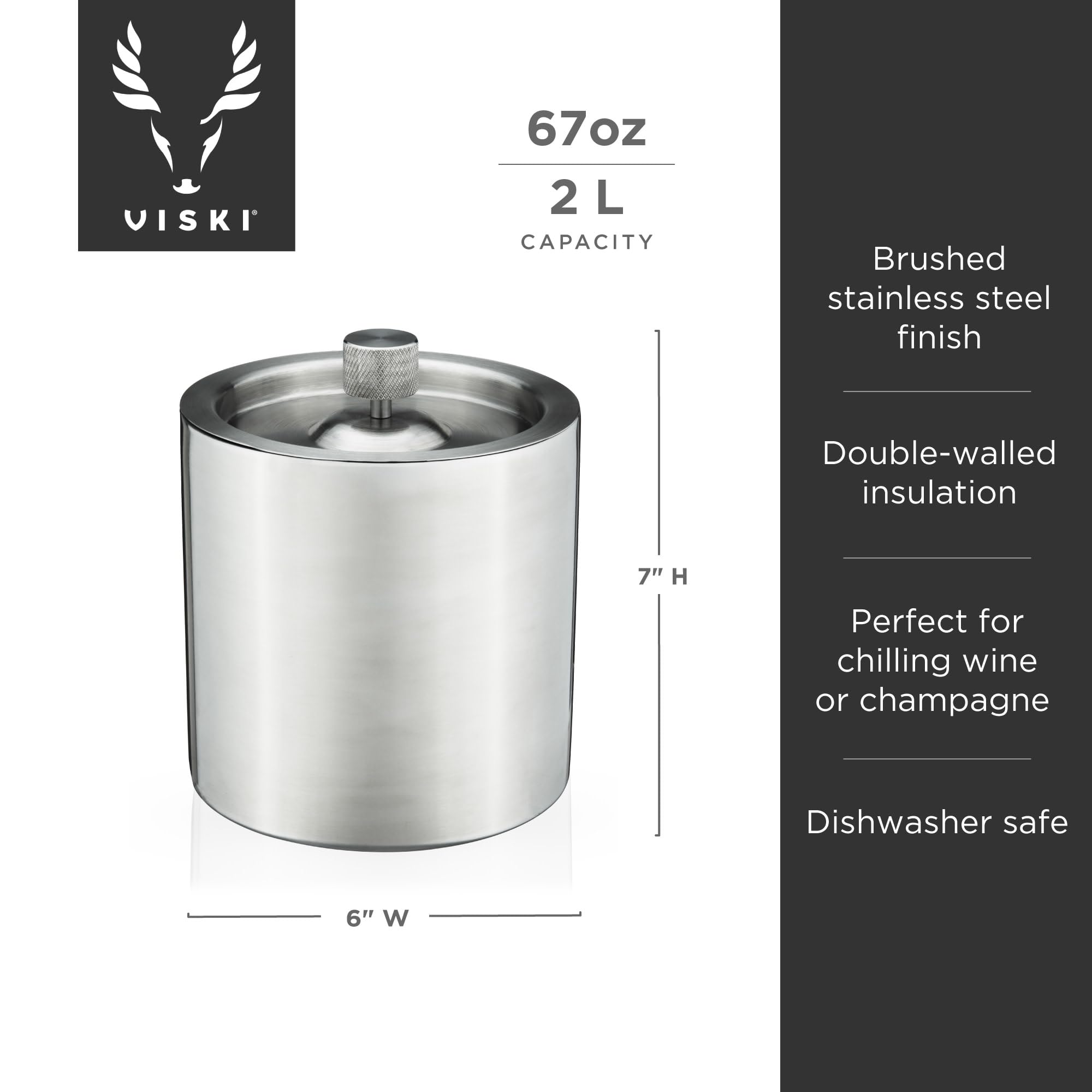 Viski Harrison Stainless Steel Ice Bucket for Restaurants or Home Bars, Insulated Ice Bucket with Lid for Bottles, Stainless Steel Bucket Set of 1